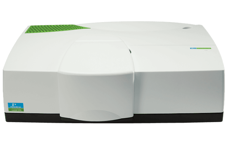 "The lambda 1050+ spectrophotometer measures absorbance (or transmittance) in solution with an operational range of 175 nm to 3300 nm through its three detectors. The photomultiplier tube R6872 (PMT) detector covers the UV/Vis range of 175 nm-860 nm with a resolution of ≤0.05 nm, whereas the indium gallium arsenide (InGaAs) and the lead sulfide (PbS) detector cover the NIR range of 860 nm-3300 nm with a resolution of ≤0.20 nm. The sources are pre-aligned deuterium and tungsten-halogen lamps, which utilize a source-doubling mirror for greater sensitivity to characterize samples accurately. The spectrophotometer comes with the UV Win Lab software, which is operationally simple and easy to use for measurement and analysis."